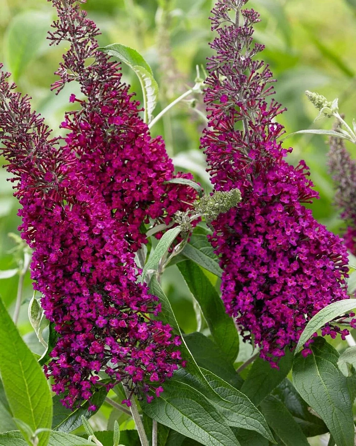 Рассада буддлеи (Осенняя сирень) Давида Summer Beauty порадует эффектной кроной, которую составляют пышные пурпурные соцветия. Во время цветения воздух наполняется приятным медовым ароматом, привлекающим огромное количество бабочек. Растение используется для создания эффектных одиночных посадок и составления красивых композиций.