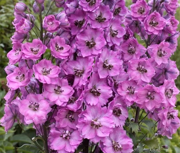 Рассада Дельфиниума высокого Делфиз Саффир (Delphi's Saffier) – привлекает садоводов не только импозантным внешним видом, но и простотой в уходе и быстрым ростом. Сорт неприхотливый и его не надо накрывать зимой. Цветение начинается в конце июня и в зависимости от погоды продолжается от 20 до 30 дней. Часто цветок применяется для создания букетов, которые не начинают увядать на протяжении 10 дней. Цветы ярко-лиловые махровой текстуры до 4 – 5 см в диаметре и составляют конусовидные соцветия длиной до 70 см. Листья округлой формы. Выращивать растение рекомендуется на нейтральных почвах с хорошим дренированием.