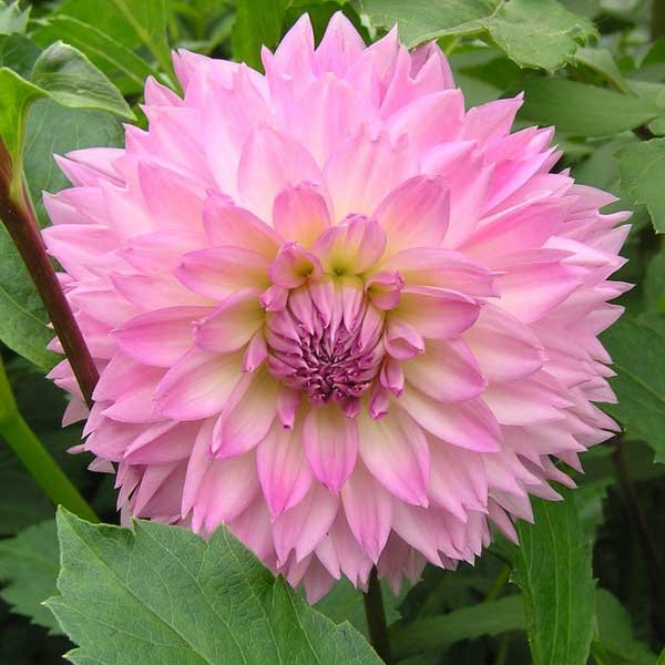 Георгина декоративная колорфул инвестмент - это настоящее воплощение красоты и изысканности в вашем саду. Ее стебель прочный, достигает высоты до 100 см, а цветки радуют глаз своей кремово-розовой окраской с желтоватым центром и розовой каймой. Листья имеют уникальную форму и добавляют растению особый шарм.