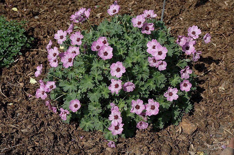 Рассада герани пепельной Ballerina (Балерина) - морозостойкий сорт, прекрасное украшение любого рокария. Кустик формируется изящный, не высокорослый (до 15 см) с декоративными листиками и нежными чашеподобными цветками диаметром до 3 см. Расцветка розовая (пепельно-розовой), с четкими лиловыми прожилками. Особенно эффектно смотрится в сочетании камешков и гальки. Цветет пышно и продолжительно, начиная с июля. Можно размножать семенами.