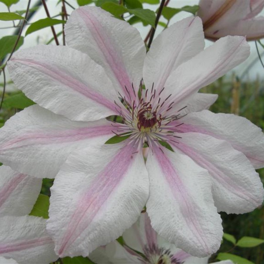 Клематис крупноцветковый Ян Павел II - это великолепное растение, которое поразит вас своей красотой и изяществом. Его стебли достигают высоты до 300-400 см, создавая великолепные живые изгороди. Цветки молочно-белые с розовой полоской, размером 20-22 см, будут радовать вас в течение нескольких месяцев в году. Листья клематиса имеют уникальную форму, что делает его еще более привлекательным.
