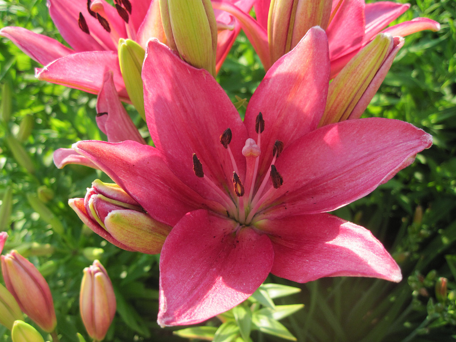 Луковицы лилии Fangio выращиваются на солнечных, защищенных от ветра местах. Почва должна быть умеренно влажной, хорошо дренированной. Сорт морозостоек, любит влагу, радует обильным цветением. В высоту разрастается до 90-120 см. Стебли прямые, мясистые, насыщенно-зеленые, с крупными и блестящими листьями. Цветы диаметром до 16 см, окрашены в насыщенный розово-красный оттенок. Лепестки слегка закрученные. На протяжении всего цветения, которое длится с июня до сентября, лилия Fangio радует приятным ароматом.