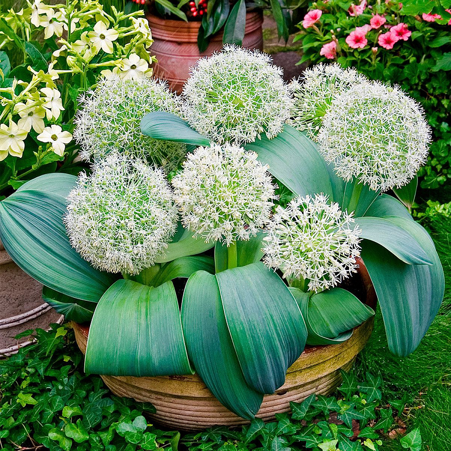Луковицы лука декоративного гигантского Айвори квин (Allium, Лук Ivory Queen) относятся к компактным сортам, высота взрослого растение не превышает 15-25 сантиметров. Культура формирует большой шар, усеянный нежными белыми мелкими цветочками. Цветение радует около месяца, распускается в мае. Используется в одиночных посадках, для украшения газонов, патио, миксбордеров, альпинариев. Крупное растение на коротких цветоносах подходит для выращивания в контейнерах. Важно правильно выбрать место для посадки, с достаточным количеством солнечного света и умеренным поливом.